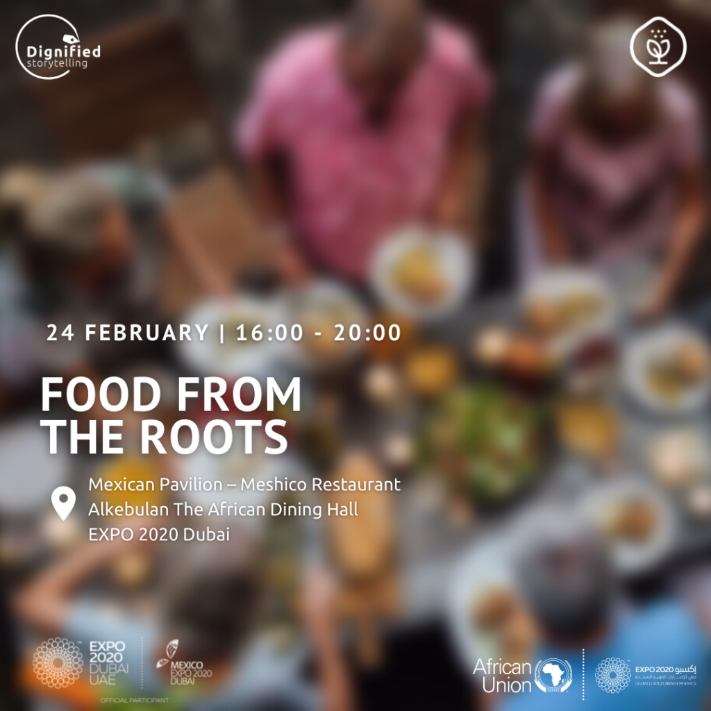Dignified Storytelling has joined efforts with the African Union and the Mexican Pavilion to co-curate “Food from the Roots”, an experience designed to create intimate and interactive conversations around the significance of food and nutrition security in different communities and cultures and how we can change the existing narratives across Africa and Latin America.