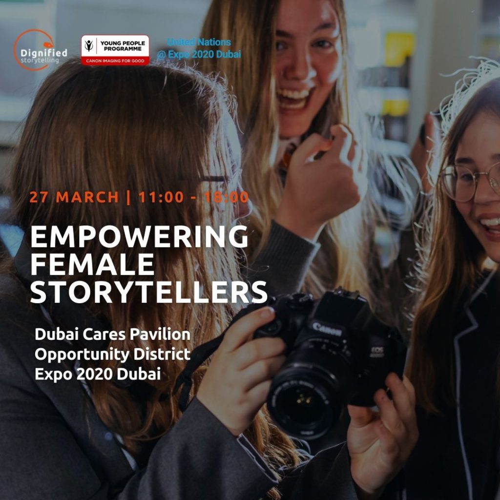 Join Canon, UN and Dignified Storytelling, in the Dubai Cares pavilion at the Dubai World Expo, to find out more about the human value of storytelling and how female storytellers connect us to our world. Hear first-hand accounts of the attitudes and experiences of three female Canon Ambassadors and learn directly with them how you can be empowered to tell your own story.